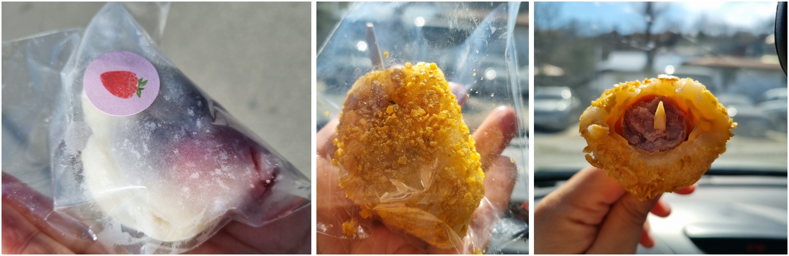 딸기찹쌀떡과 떡도그를 포장했습니다.
